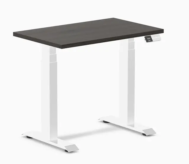 Desky Dual Mini Sit Stand Desk - Burnished Wood / 32 x 20 in / White