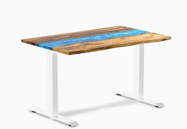 • Artisan Resin River Design Features a unique resin inlay that mimics a flowing river, adding a striking visual element to your workspace.
