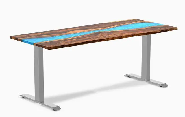 • Artisan Resin River Design Features a unique resin inlay that mimics a flowing river, adding a striking visual element to your workspace.