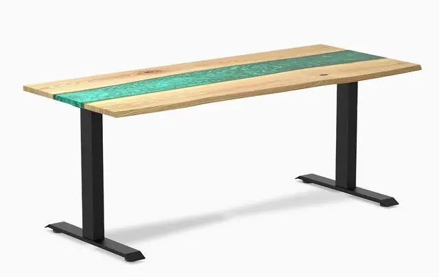 • Artisan Resin River Design Features a unique resin inlay that mimics a flowing river, adding a striking visual element to your workspace.