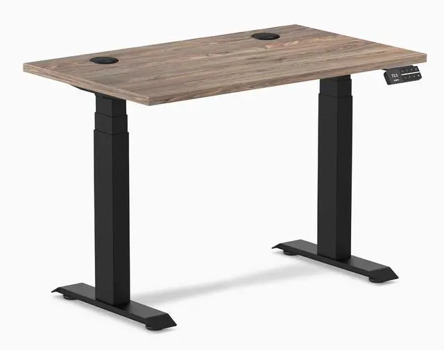 Desky Dual Mini Sit Stand Desk - Natural Walnut / 40 x 24 in with Grommets / Matte Black
