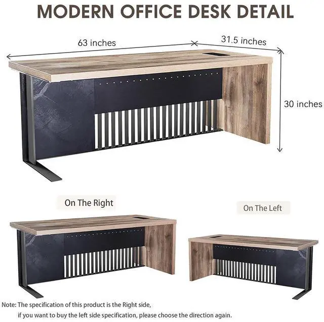 63" Heavy-Duty Executive Office Desk, Modern PC Computer Workstation with Ultra-Thick 1.97" Desktop & Stainless Steel Frame, Large Business Study Writing Table for Home Office Right 63 in