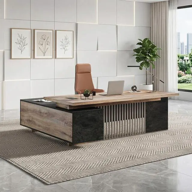 This set of three desks offers a cohesive, professional solution for modern offices, studios, or executive suites, combining functionality with robust design.