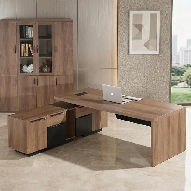 Maintain a clean, organized workspace with the advanced cable management system, utilizing grommets and routing channels to conceal and organize cords. The comprehensive lateral storage cabinet and smooth-gliding drawers offer secure storage for B2B Letter/Legal documents, tech accessories, and office supplies, reducing desktop clutter. Constructed from high-density engineered wood with a scratch-resistant, waterproof veneer, and reinforced with a commercial-grade frame, this desk promises exceptional stability and durability for intensive office or creative use.