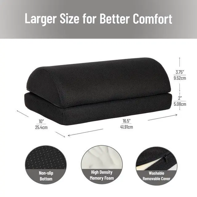 Designed to ease back, hip, and leg discomfort, this high-density memory foam footrest promotes healthy posture, improves circulation, and relieves pressure during long hours of sitting.