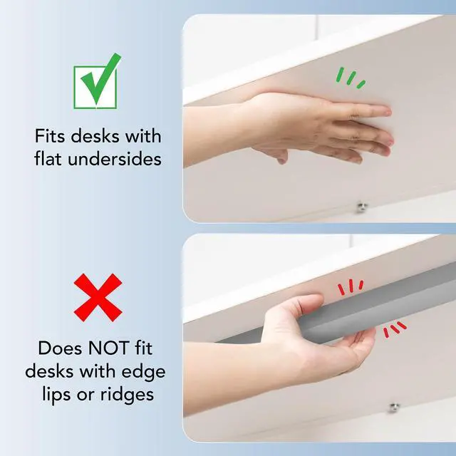 Fits desks with flat undersides only. Not compatible with edge lips, bevels, or raised ridges