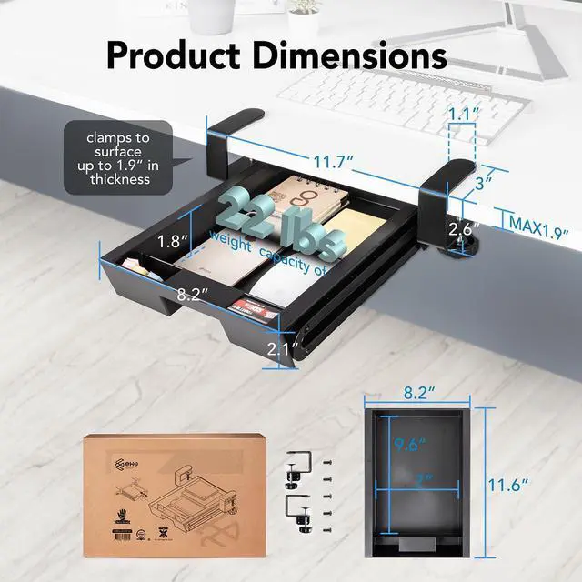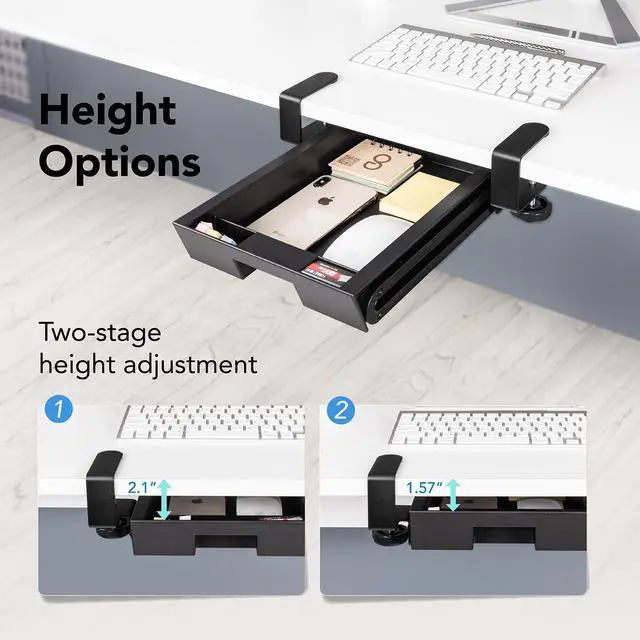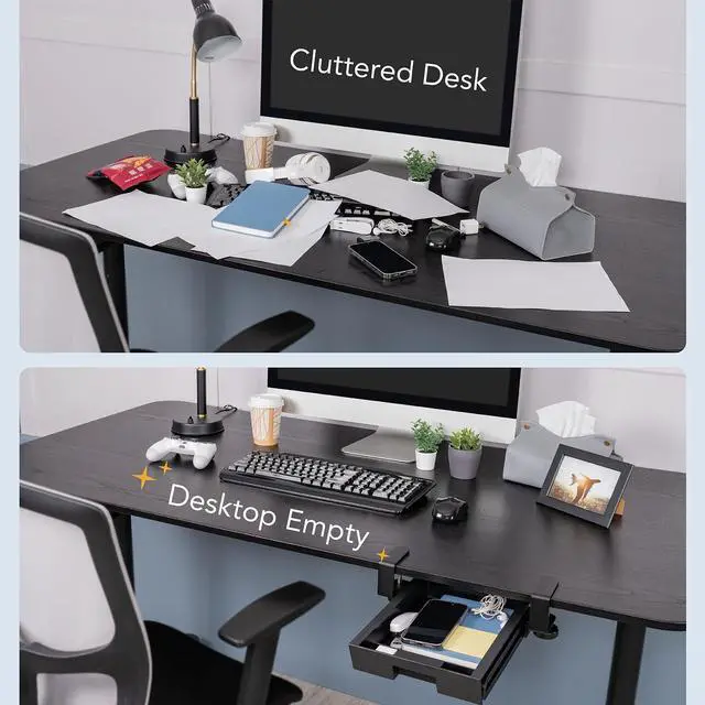 Create more room to think, work, and focus. Our compact clamp-on drawer installs in minutes and keeps your essentials tucked away, so your workspace stays clean, productive, and inspiring