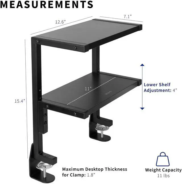 | Included Components | Above/Below Clamp-on 13" Dual Shelf |