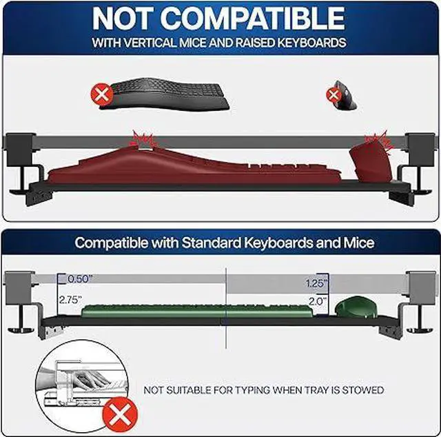 Easy Installation: All hardware and instructions are provided for assembly, and mounting your keyboard tray to the desk is an easy process with the adjustable clamps. Please Note: This tray is not compatible with desktops that have beveled edges