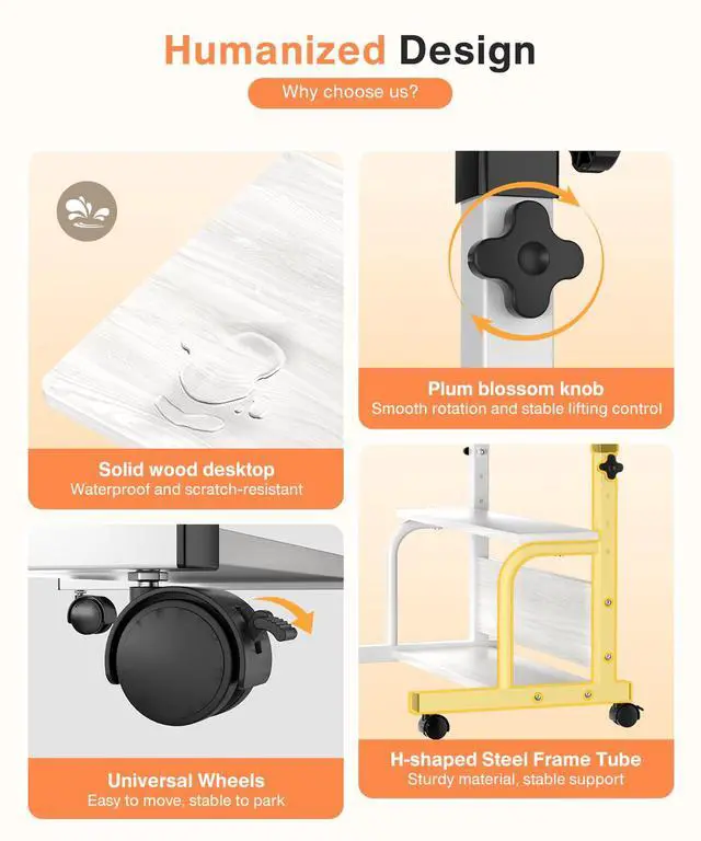 -Adjustable height and easy to use: The height can be changed easily and quickly, and the height can be freely adjusted between 28-35.4 inches, inches, The desk legs come with rollers and weigh about 15 pounds, You can move the desk anywhere