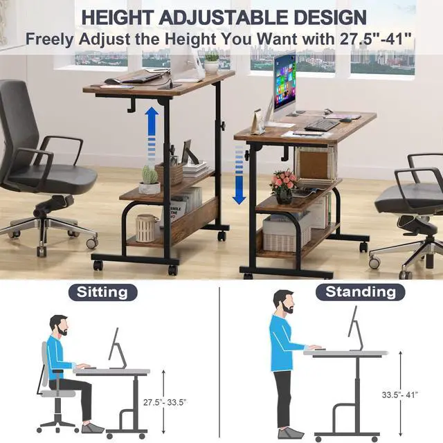 - Portable adjustable desk can be adjusted height from 27.5-41 inches to meet your needs for desk height, protect you from headache, neck pain.