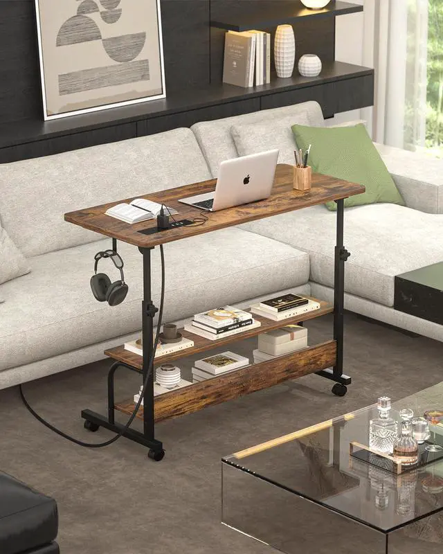 - The C-shaped design mobile standing desk is convenient for you to work, eat, holding dishes, snack, coffee, magazines, suitable for living room, bedroom, study, small space, especially beside any sofa and bed.