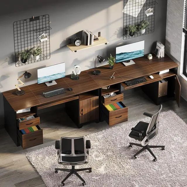 Robust Construction: Supported by 2 robust pedestals, the modern desk can hold up to 200 lbs on the desktop, 20 lbs in the storage drawer, and 40 lbs in the file drawer, making it a durable choice for your office needs