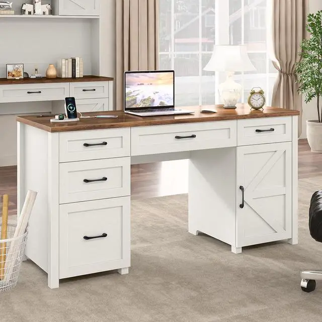 Stylish and Functional DesignMore than just a desk, this piece of furniture enhances the overall aesthetic of any room with its farmhouse-inspired design. The large desktop and abundant storage make it ideal for professionals, students, and remote workers, providing both elegance and efficiency in one versatile product.