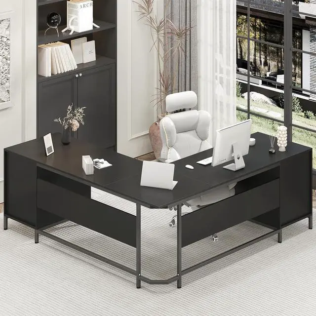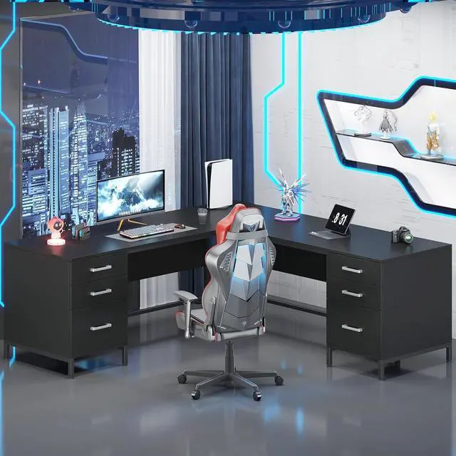 [Sturdy and Durable] This large home office corner computer desk is made of MDF board with a scratch-resistant coating that protects the desktop from daily wear and tear. It' s also easy to clean, so all you have to do is wipe it with a dry rag. No need to replace this product frequently
