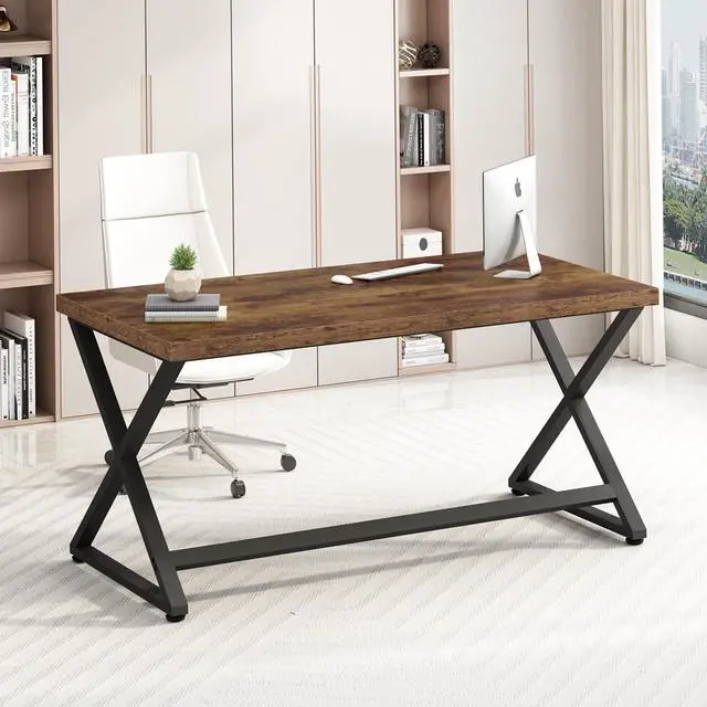 Sturdy Construction: Crafted with quality Rustic Engineered Wood and a strong black metal frame, we ensure the stability and durability of the executive desk, allowing it to be used for a long time without compromising its elegant appearance. The robust and scientific structure can support weights of up to 300 pounds.