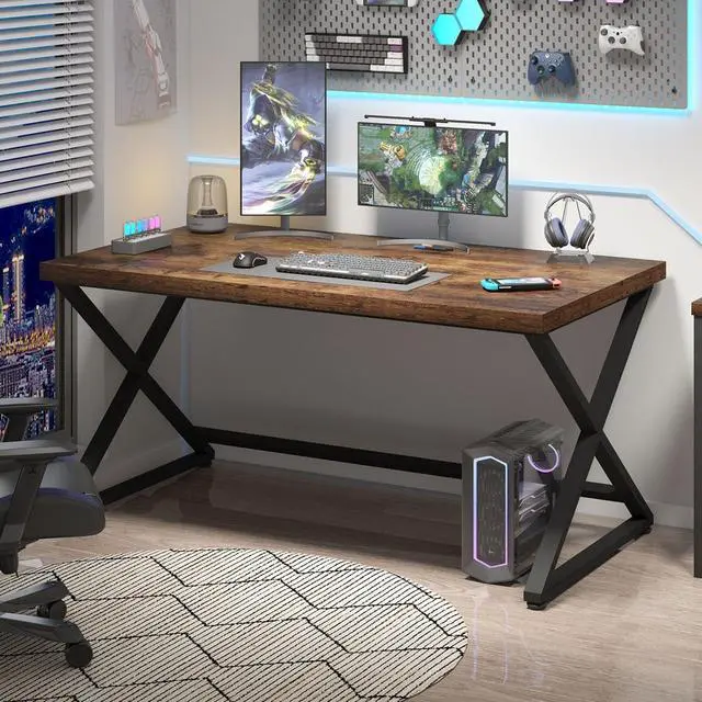 Versatile Usage: Due to its perfect size and versatile style, the PC table can be used as a Sturdy computer desk for living room, a gaming table, an executive desk or a small workstation for your home office. Compared to other home office desks, it offers a larger space to accommodate your laptop, PC, keyboard, and desktop accessories.