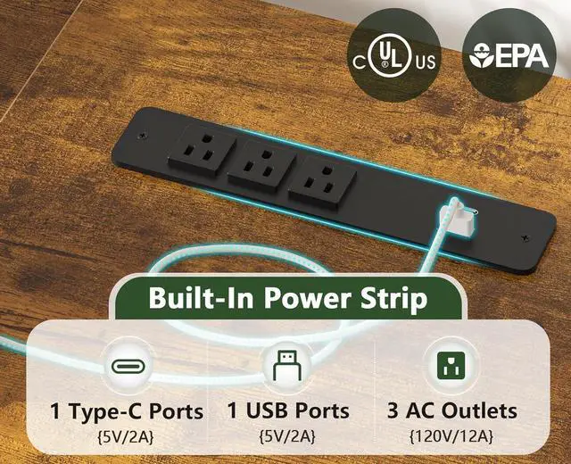 • POWER OUTLETS& USBThis writing computer desk comes with a charging station with 4 outlets 2 USB ports and Power Control Switches to easily charge your cell phones, computers, printers, gaming devices, and other office equipment. This will save you from messy cords and keep the desktop clean and tidy