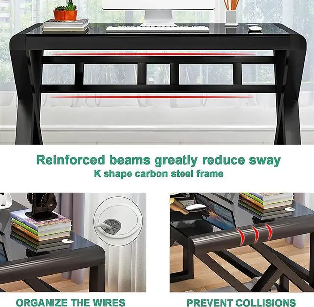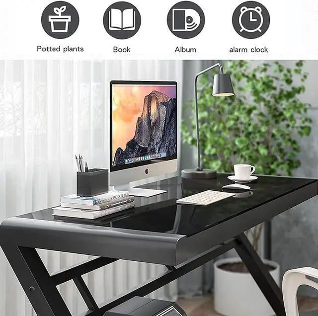 Tempered Glass Computer Desk: Crafted from tempered glass, this desk is scratch-resistant, anti-collision, and waterproof, ensuring durability. Its elegant design adds a touch of luxury to any room, making it a perfect addition to your home office