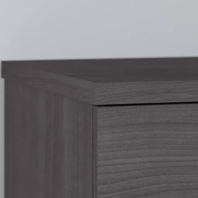 STAY ORGANIZED: The modern desk includes two file drawers for letter and legal-size paperwork as well as two box drawers for small office supplies. Built-in wire management grommets help keep the desktop free from cords and cables.