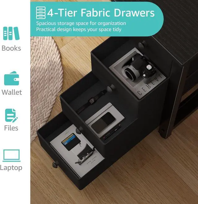 Working Desk With Ample Storage Options: Computer desk with 2 storage shelves and 4, you can try this two installation methods (left or right), and the shelves have two different heights of installation, you can customize the storage space to your needs. It also have 2 iron hooks, perfect for holding magazines, notebooks, bags or small electronics
