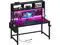 Modern Simple Style Design: Computer desk with hutch, pegboard, pegboard storage bag, hooks and LED strip, provides plenty of storage, keep everything within reach but off the desk surface. Built in power outlets with 3 AC power outlets & 2 USB ports. This desk is made of thick P2 particle wood board with scratch-resistant, anti-collision and waterproof, protect home office desk surface from daily wear and tear