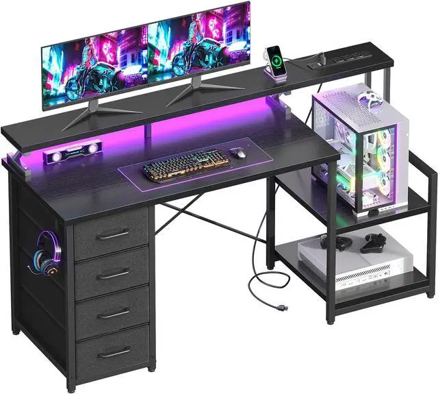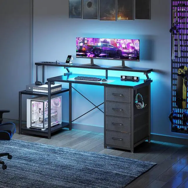 Core Functional FeaturesEngineered for maximum utility, the desk boasts a robust dual monitor stand that optimizes screen placement for ergonomic viewing. The integrated USB charging station provides convenient device power access, while the ambient LED lighting system creates an ideal working atmosphere. Four generously sized storage drawers offer organized space for office essentials, and the dedicated printer shelf keeps equipment accessible yet unobtrusive.