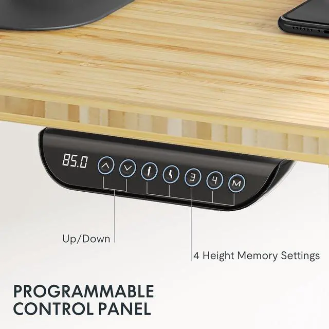 UNIQUELY VIBRANT CONTROLS: Enjoy buttons with blue backlighting and a breathing effect for a modern touch. Four height memory buttons ensure quick adjustments to your preferred ergonomic height.