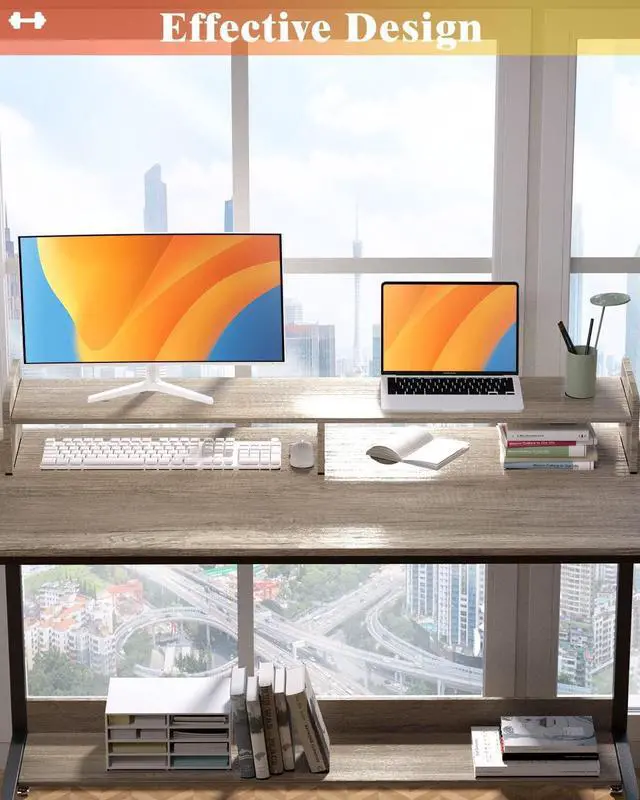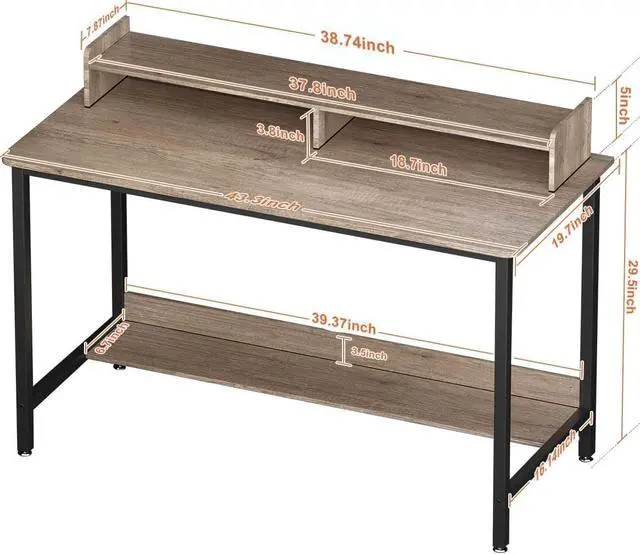 SOLID STRUCTURE - The computer desk is a combination of sturdy MDF borad and a solid iron frame; This provides stability and practicality for the home office desk; The MDF borad of the bookshelf under the desk serves as storage space; Adjustable feet pads keep the desk stable and prevent your floor from being scratched, but also can be rotated to a certain extent to adjust the height, Keep the desk remain level and stable even on uneven surfaces