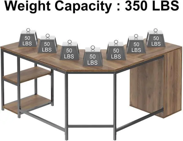 High Weight Capacity: Crafted from heavy-duty metal, this corner table offers exceptional stability and durability. With a weight capacity of 350 pounds, our l shape desk ensures sturdy support for all your work materials, empowering you to stay productive.
