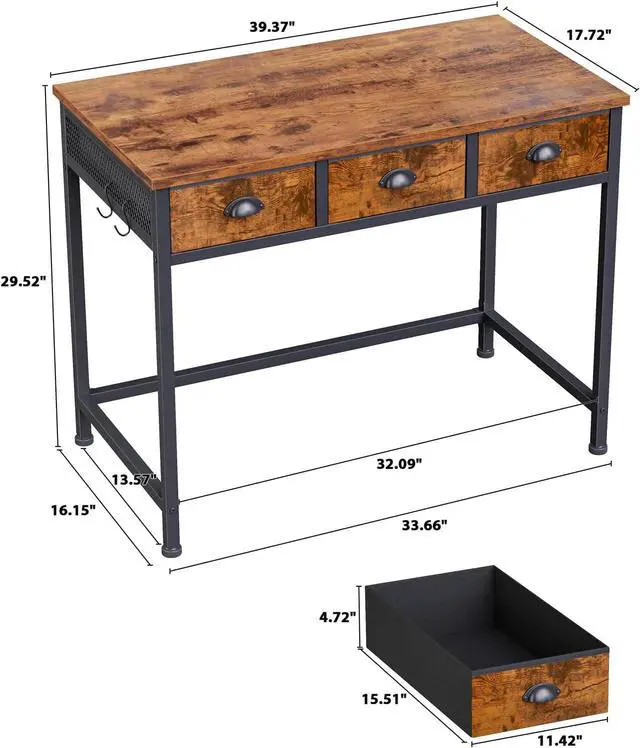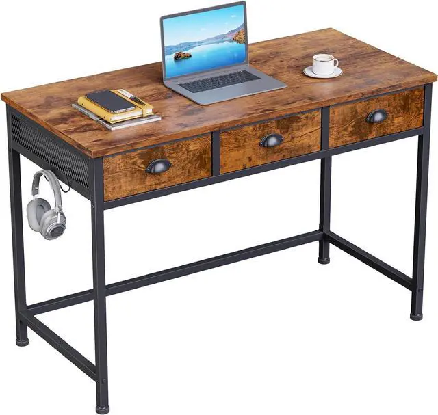 [Desk with 3 Fabric Drawers]: Two storage drawers provide ample space to store books, cosmetics, jewelry and other daily necessities; the drawers are made of non-woven fabrics (NOT WOOD DRAWER), its more convenient for assembling compared to traditional wooden drawers, it also can meet your storage needs, using your desktop space more freely.