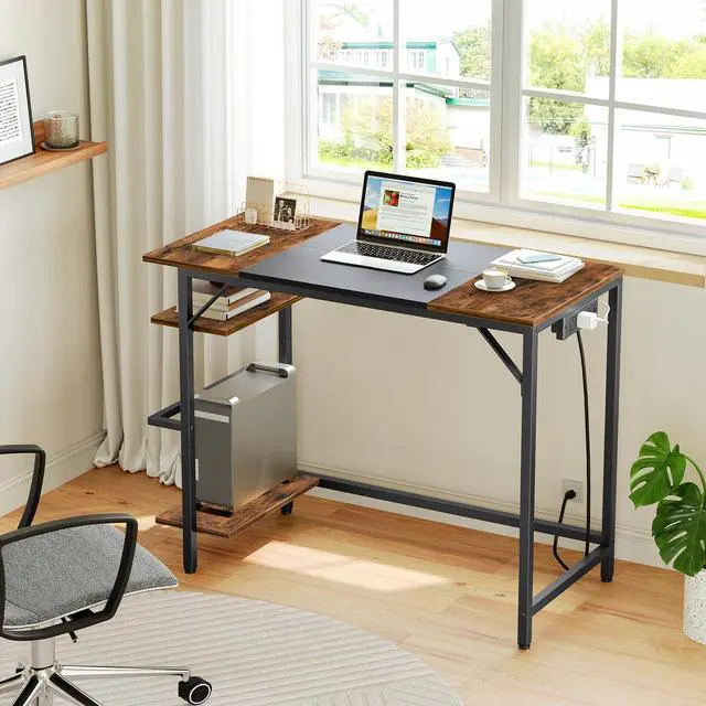 Compact Design: Measuring 35.4 " L x 15.7 " W x 30.3 " H, this small desk has a spacious desktop for your computer and office supplies. The side shelves organize the computer tower and more, while the reasonable height provides ample leg room for comfort