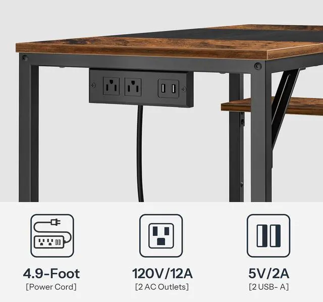 Charging Station: This computer desk is equipped with a multi-function power strip featuring 2 standard outlets and 2 USB ports, meeting your various charging needs and keeping your electronic devices fully charged at all times