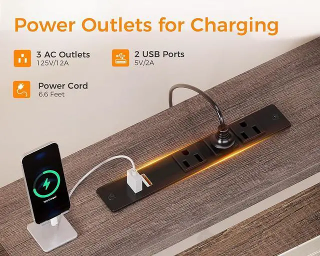 Multi-Device Charging Hub: Power Outlets & USB PortsStay fully charged with 3 power outlets and 2 USB ports, allowing you to power up to 5 devices at onceperfect for smartphones, gaming accessories, and Bluetooth gadgets. Whether you' re working, studying, or gaming, this desk keeps all your electronics powered and within reach for ultimate convenience.