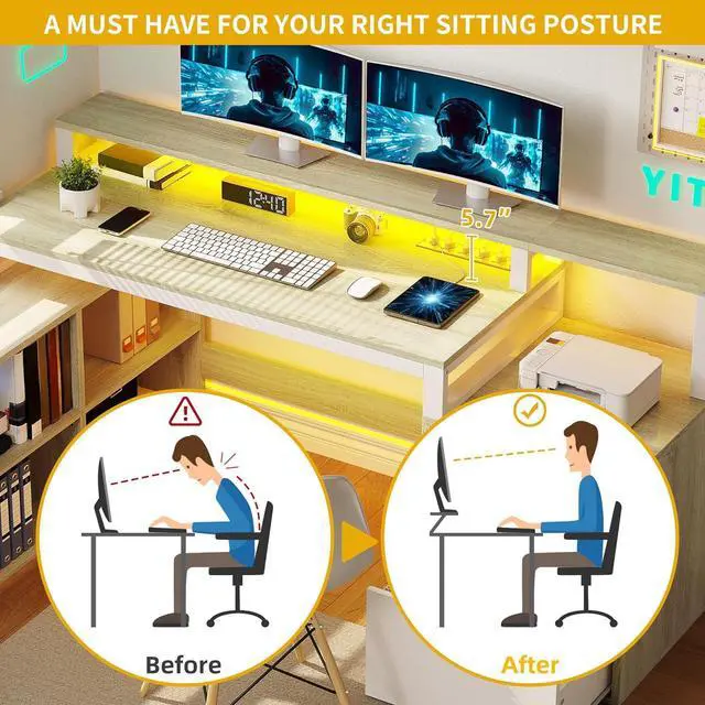 Smart LED Light Strips: Our corner office desk features a beautiful RGB LED light strip, flexibly controlled by a phone app or light strip switch, and you can customize any color you like via app. Plus, choose from various modes including music sync and timer functions to enhance the mood and inspire creativity while working