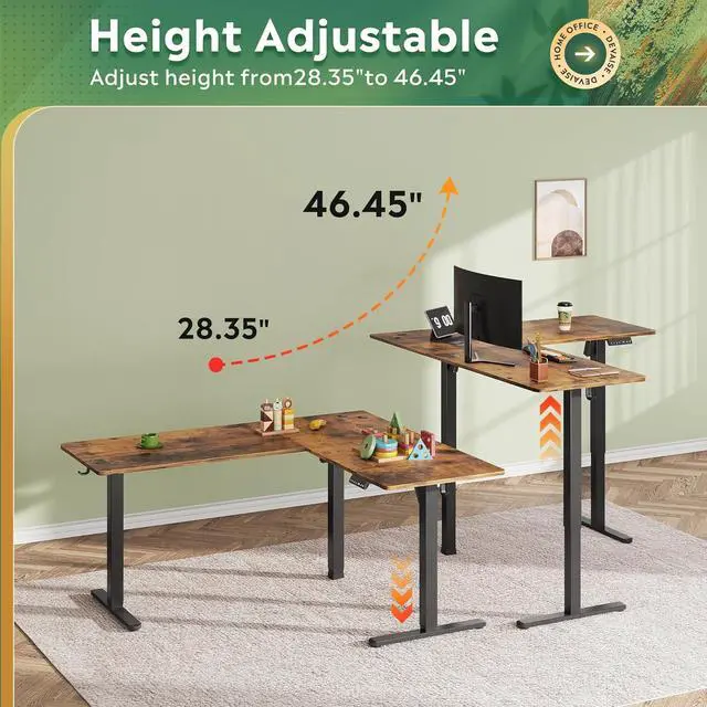 Large workspace - This L shaped standing desk is designed to fit perfectly in different spaces, providing extra workspace with 63x55 inch tabletop and flexible right/left orientation for all your needs.