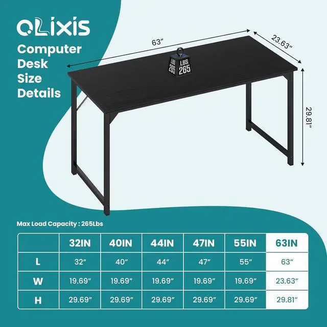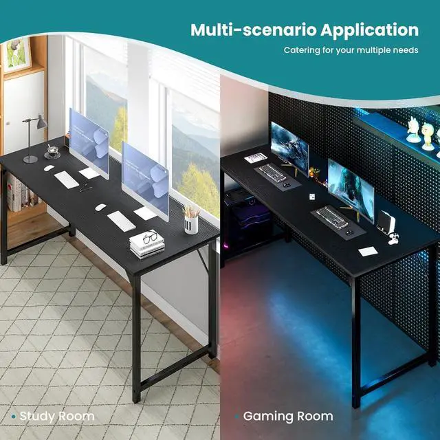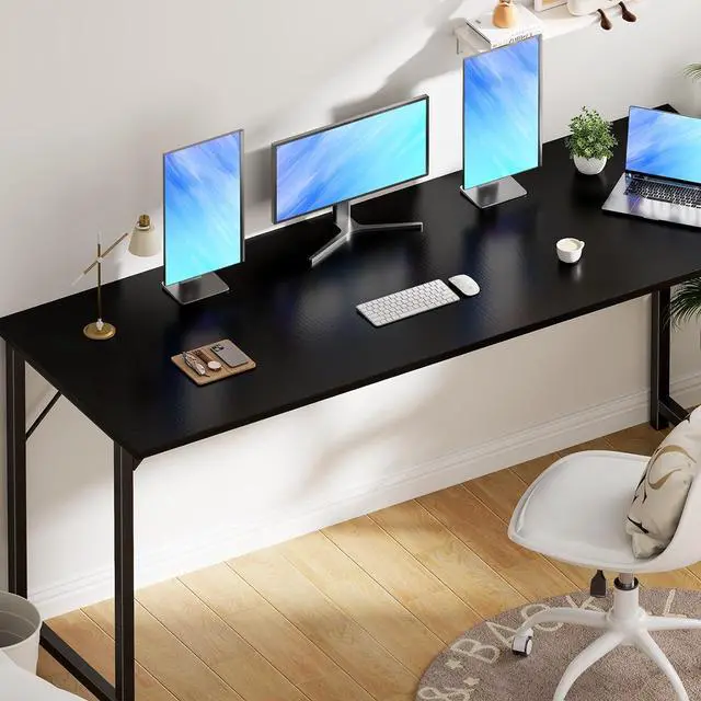 Our computer desk is designed in a modern but simple style. It can match all home decor styles and is not easy out of date. The spacious tabletop space makes it easy to contain your PC, laptop, coffee cup, mini plant, keyboard, etc. There are 3 sizes for you to choose from that meet all requirements for a bedroom, study room, or corner, working space