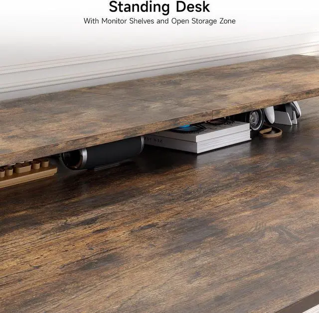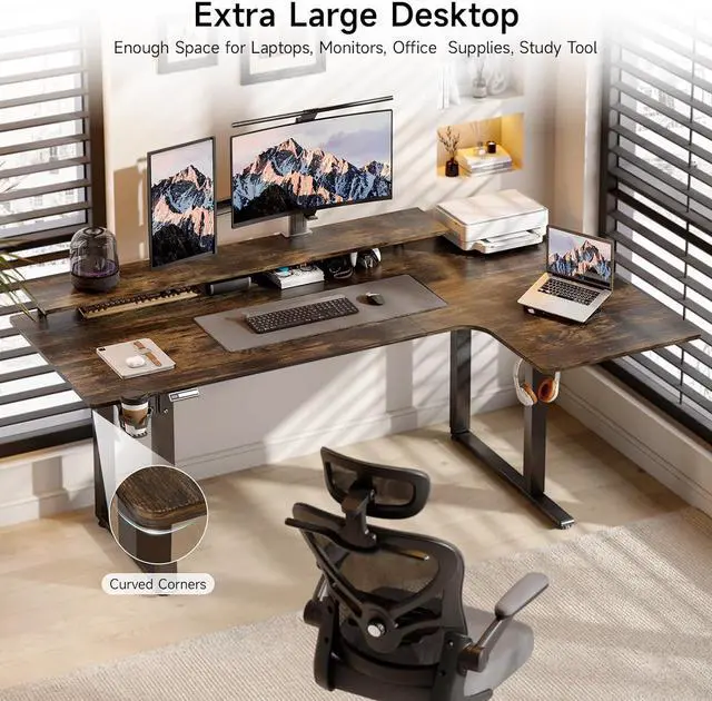 L-Shaped Stand-Up Desk with 4 Legs: The Onbrill Desk has a large L-shaped Desktop. The height-adjustable desk features the latest design of 4 Legs, which gives computer workstations greater stability than any other desk on the market. This computer workstation has a dynamic load capacity of 176 LBS