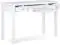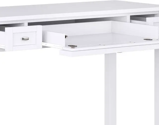 Features two side storage drawers with metal drawer glides and flip down central drawer front with internal keyboard tray