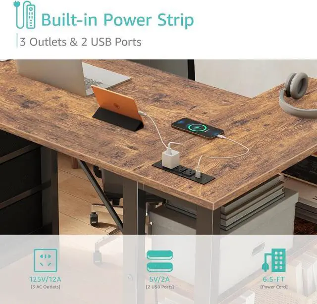 Safety Multifunctional Power Strip: The computer desk includes a built-in power strip with 3 power outlets & 2 USB charging ports for your computer, monitor, gaming gear, pad, phone and other electronic devices. The desk is
