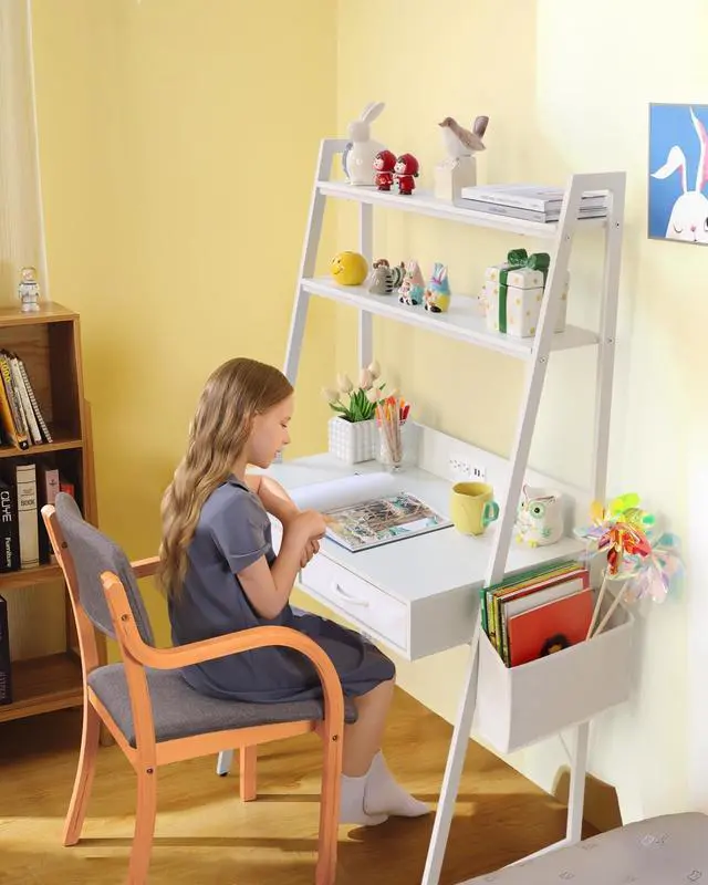 Durable & Quality MaterialsCrafted from premium wood and sturdy steel structure, this office desk with drawers for adult kids is built to last while adding a modern touch to your home office. Its ladder-style design not only enhances aesthetics but also provides excellent stability, making it an ideal choice for daily use in any home office setting.