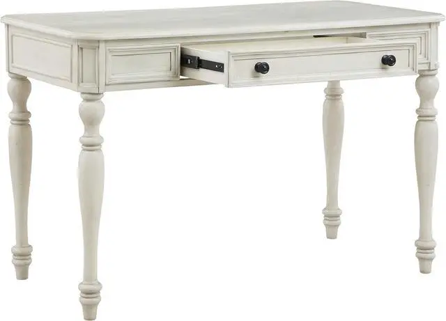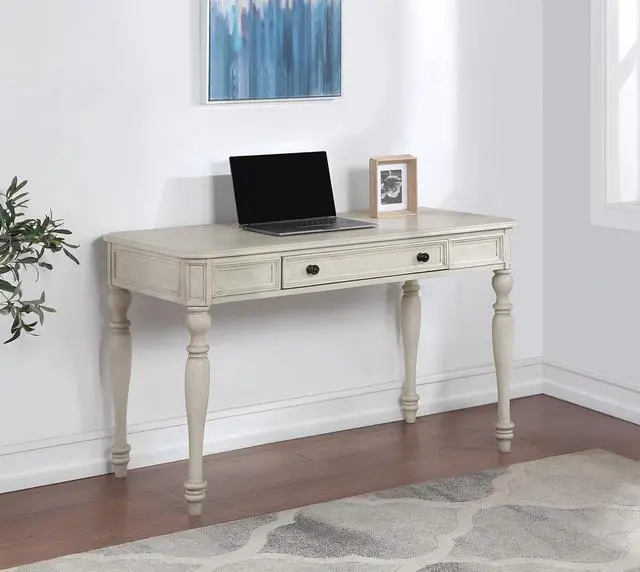 Crafted of solid wood and wood veneers, this versatile desk elevates any environment with premium extras like hand-rubbed lacquer finish that accentuates its elegant edge profile and turned leg detailing
