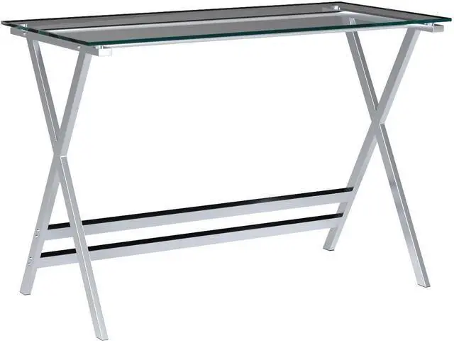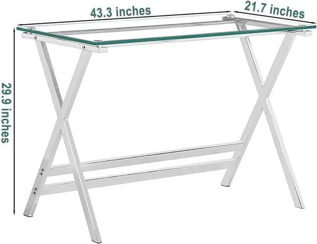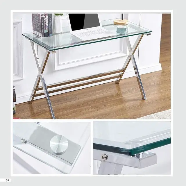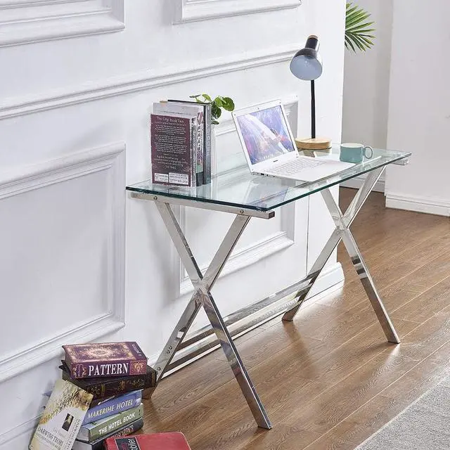 Perfect for Small Spaces-Clear glass+stainless steel metallic luster, this study desk makes your room feel larger.