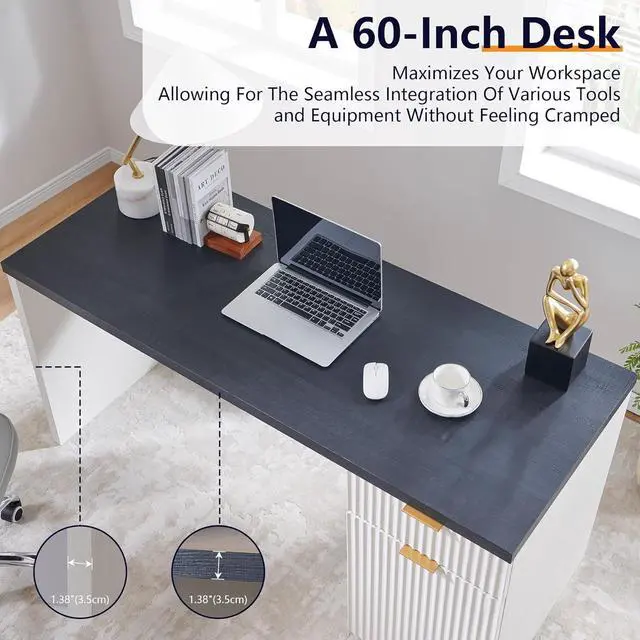 Spacious Design: Embrace the expansive 60-inch surface area that offers ample room for your laptop, documents, and all the essentials for a clutter-free workspace. This desk is designed to accommodate a variety of tasks, from writing and drawing to using multiple electronic devices simultaneously.