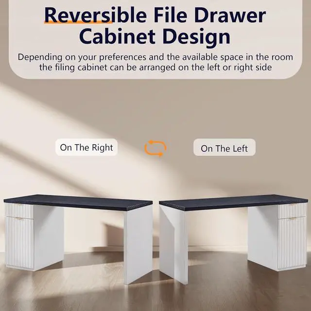 Flexible Configuration: The innovative reversible design of the file cabinet allows you to customize the computer desk' s layout by installing it on either the left or right side, adapting to your space and preferences, and ensuring orderly storage of your files, books, and other home office supplies.