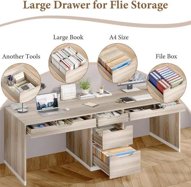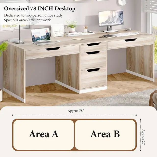 78-Inch Desktop and 5 Functional Drawers: Spacious 78-inch desktop lets two people work side-by-side.