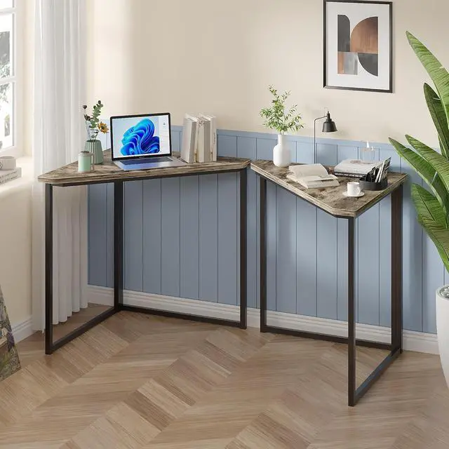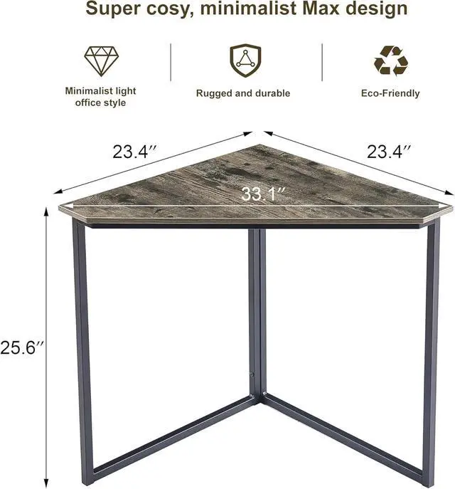 Simple Industrial StyleThe VECELO Corner Table is Ideal for Small Spaces, Apartments, Dorms or any place with a limited amount of space. The corner shelf features warm retro color panels and matte black tubes, which are perfectly integrated into any home decor.