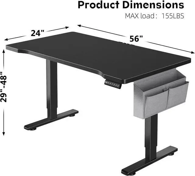 Ergonomic Whole-Piece Workspace This 56 x 24 inch electric standing desk can hold multiple monitors and other items at the same time, and is designed with high quality materials, waterproof and easy to clean, while the side pockets provide extra storage space, at the same time, the cable manager is designed to help you organize your desktop To provide you with a spacious and comfortable office space.