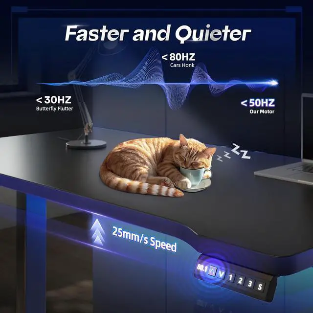 Fast and Stable The stand up desk lifting is fast and stable, equipped with powerful motor equipment, 155LBS load-bearing can ensure that the rising process is very stable, the lifting speed of 25mm/s will be faster than similar products. Contains an industrial-grade steel frame that ensures outstanding stability, and the lifting process of stable steel and wood structure is noise reduction.
