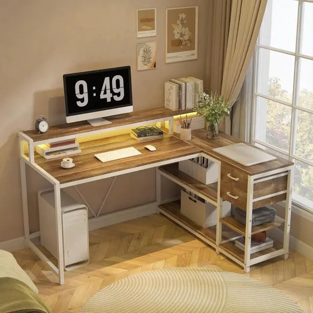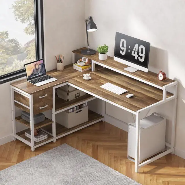 Optimized L-Shaped Design: Perfectly crafted to slot into any corner, this L-Shaped desk is ideal for maximizing use of your home office space. Particularly fit for smaller rooms, it turns any corner into an efficient work station, revolutionizing how you approach your work